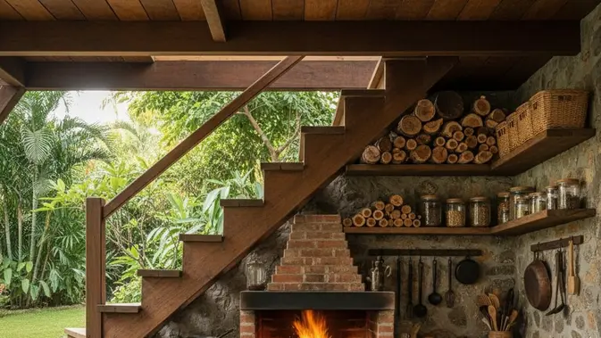 Tags: BawahDapurdenganDesainInspirasiKayuMenarikRakRusticTanggaTerbuka